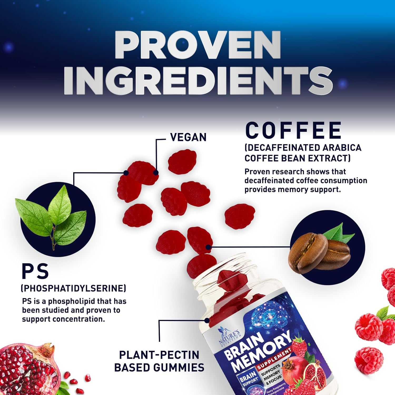 Learn more about the Brain Supplement Gummies for Concentration Memory  Focus Support - Brain Clarity Health with B6 B12, Phosphatidylserine, Coffee Extract, Nootropics Cognitive Vitamins for Adults - 60 Vegan Gummies here.
